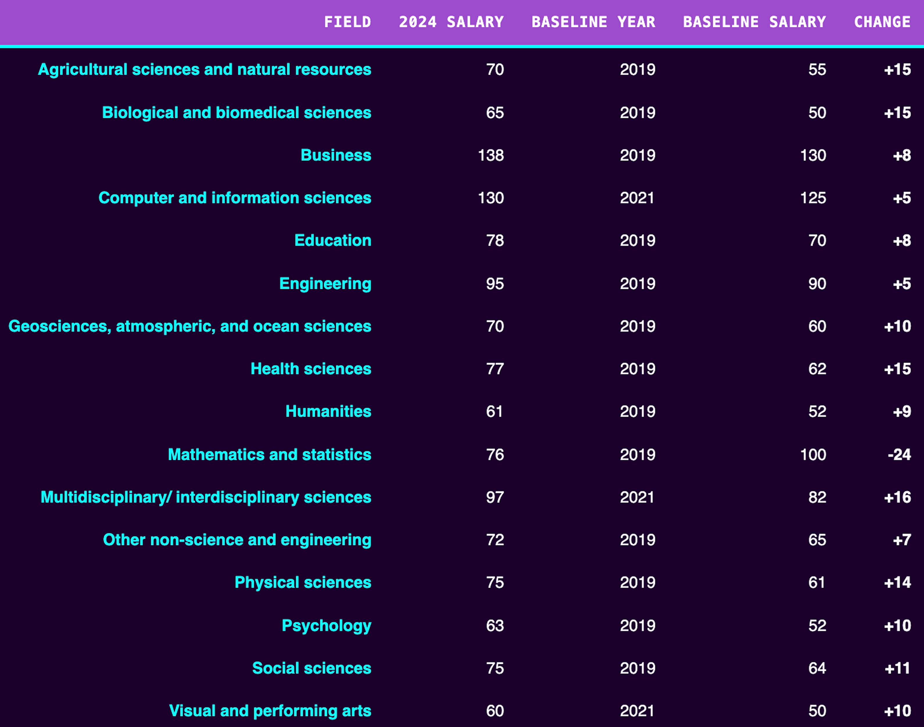 Our research reveals that salary competitiveness across US doctoral fields has generally strengthened between 2019 and 2024, with notable variation by discipline.