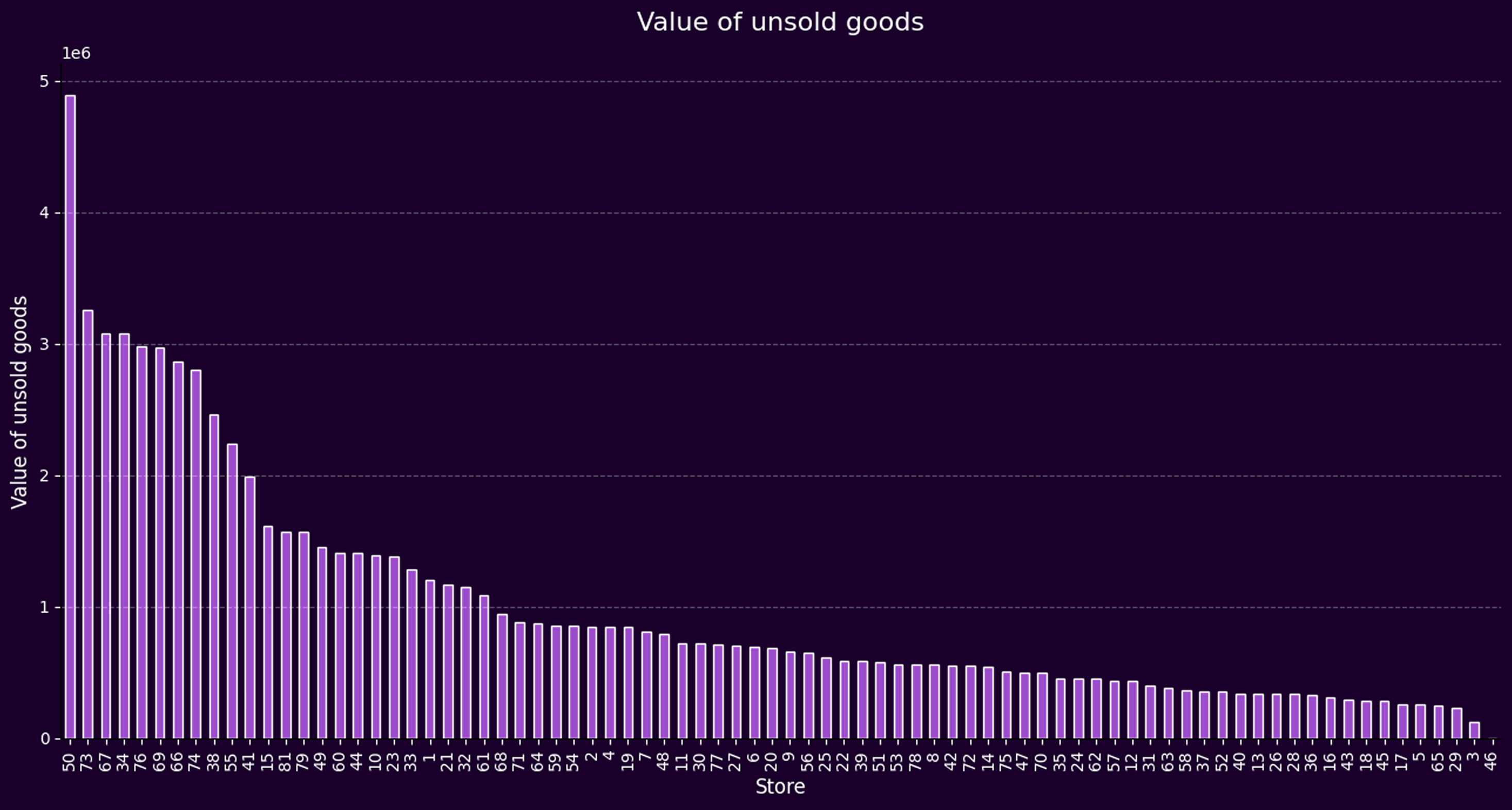 The Efficiency Index served as a balanced metric to evaluate stores. While some stores had minimal leftovers, their revenues were negligible. Others made significant purchases but couldn’t convert them into efficient sales, suggesting a mismatch between purchasing and customer demand.